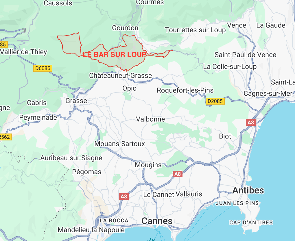 domiciliée au Bar sur Loup, dans les Alpes-Maritimes, à moins de 30 min de Vallauris, Biot, Cannes et Grasse.