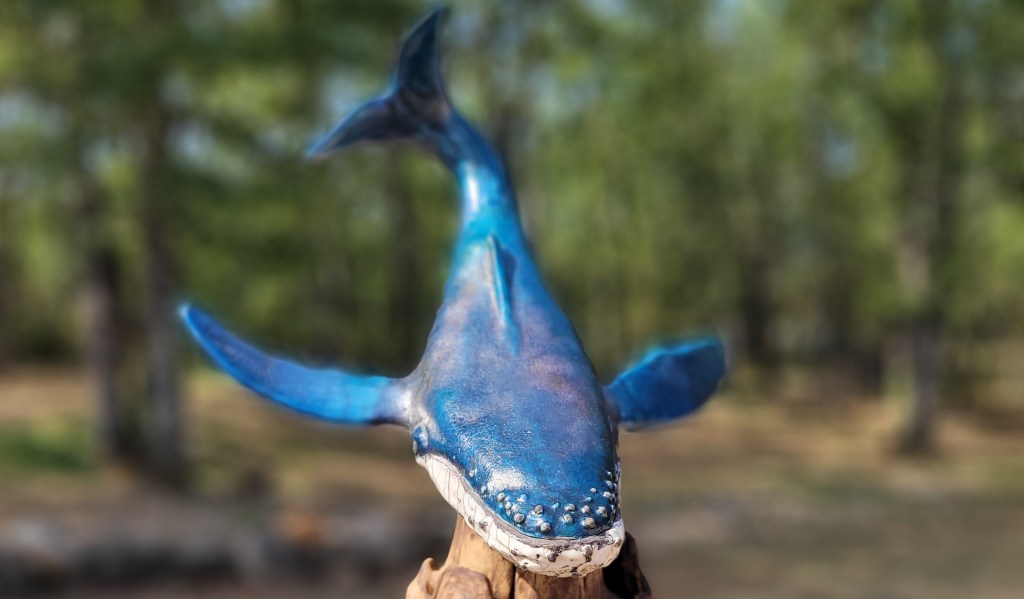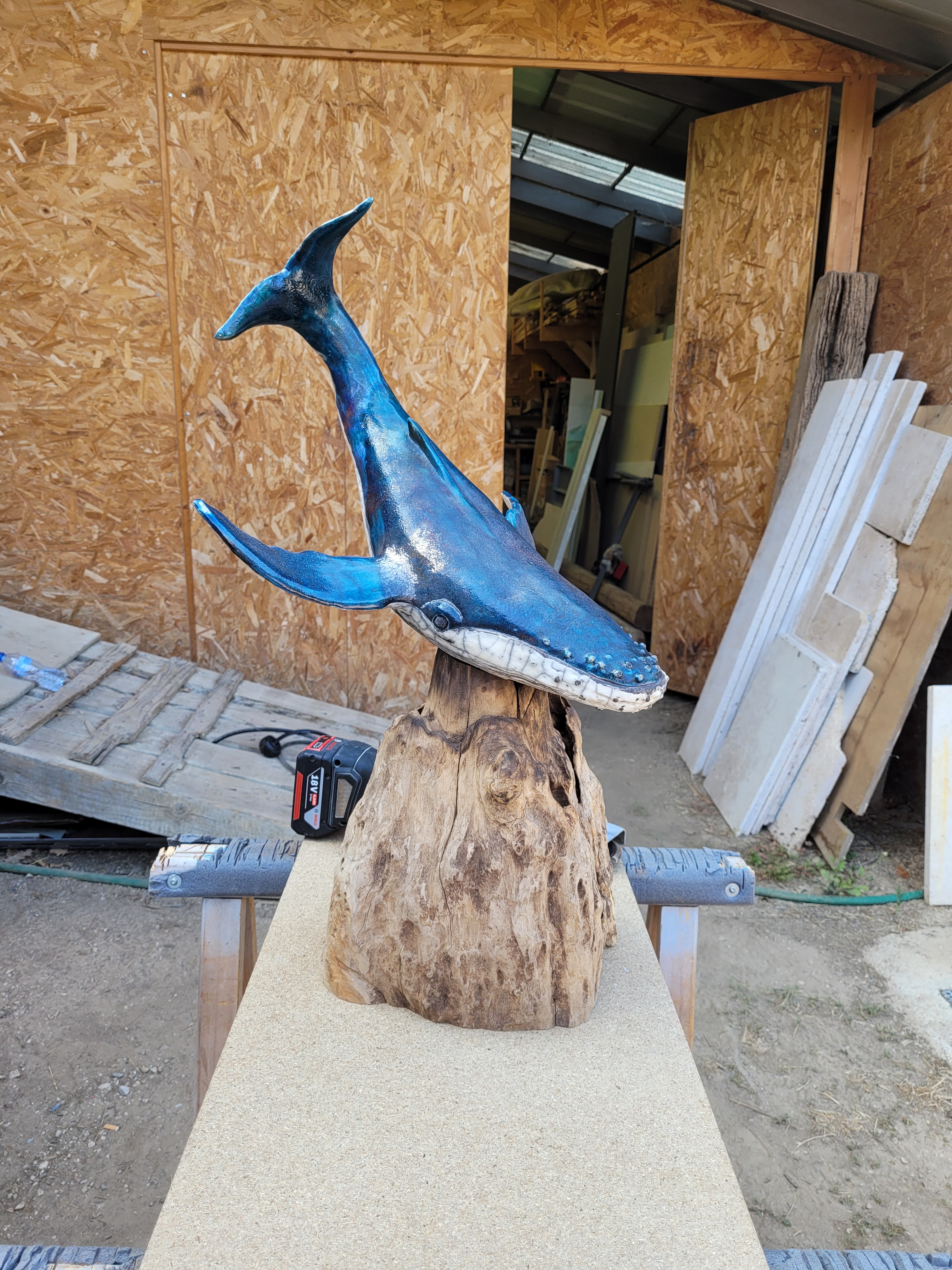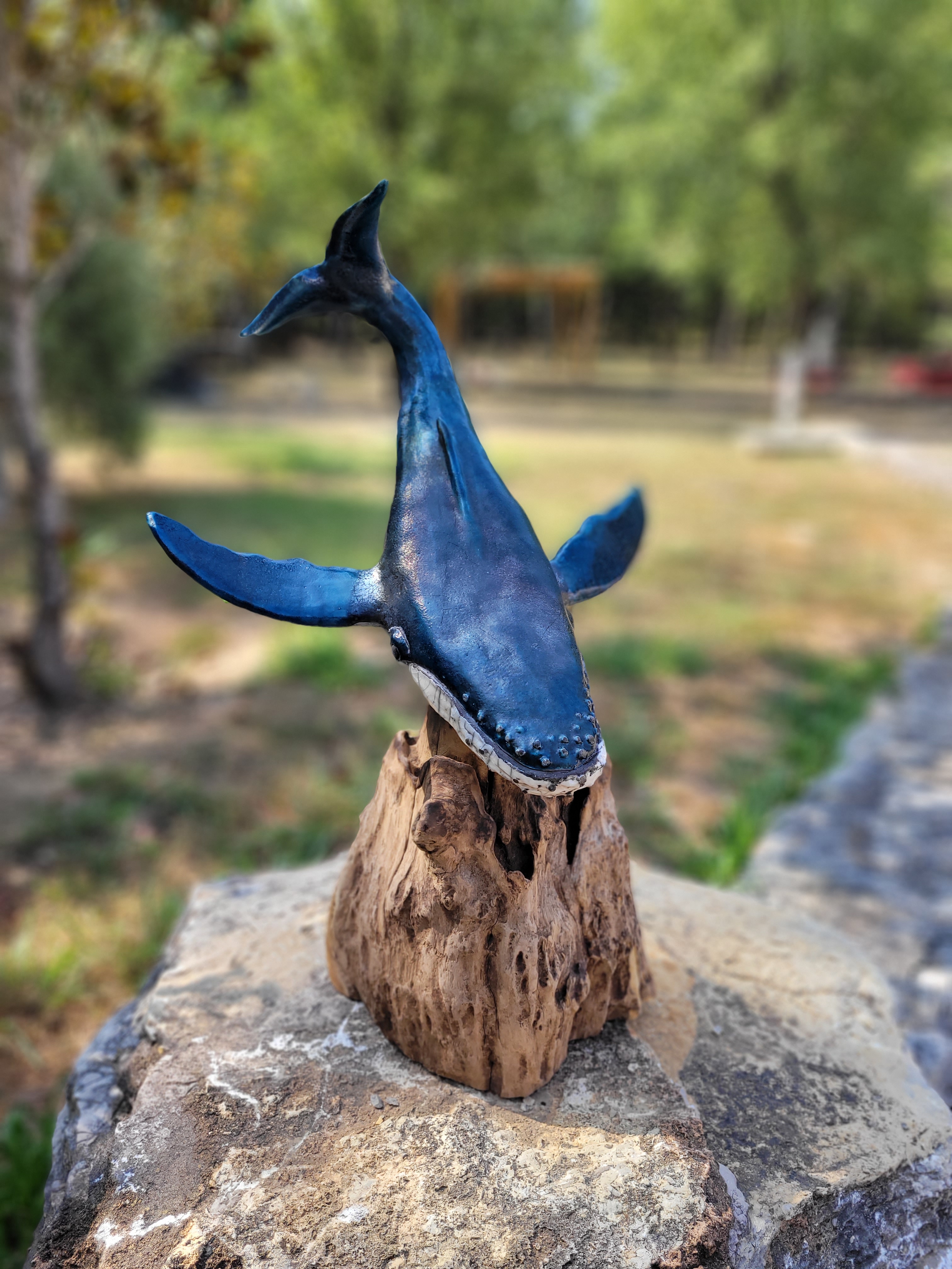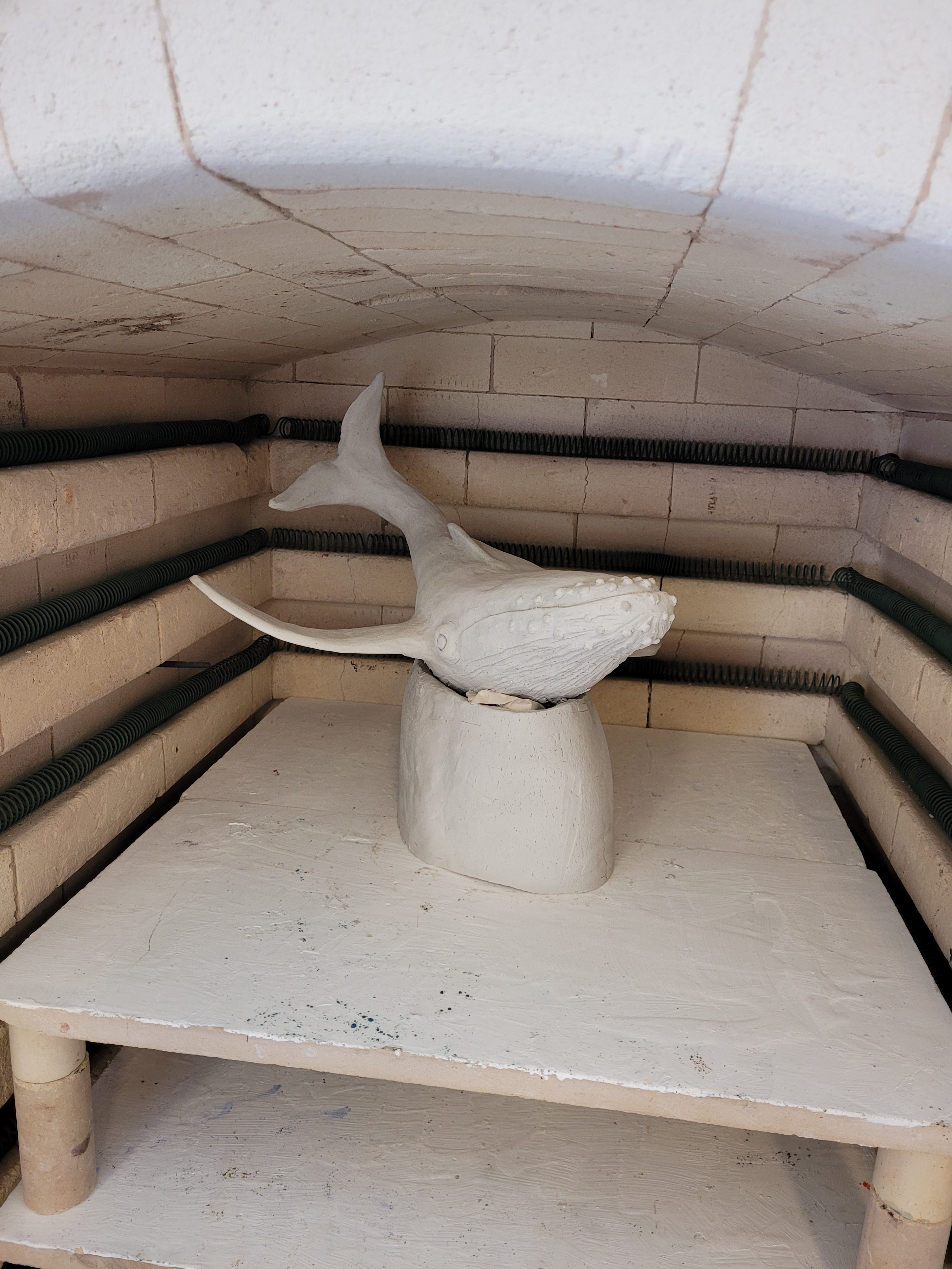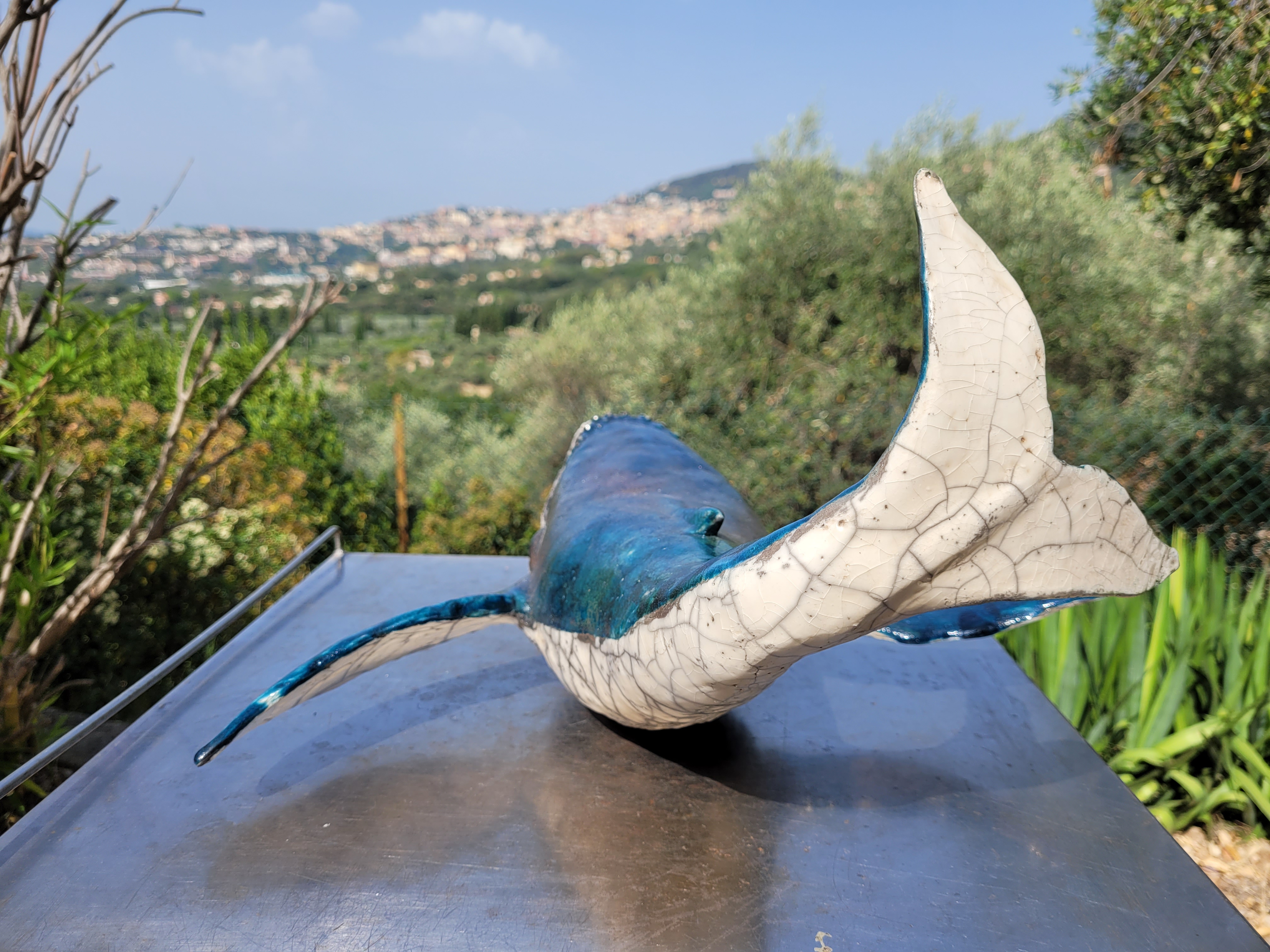A ce jour, Hoplie est mon plus grand challenge. Réalisée pour l’amour de ma vie, qui adore les baleines à bosses, les défis étaient de : monter ce monstre, de 50cm d’envergure, sans le casser avant cuisson, de donner un mouvement « aérien » à un mastodonte aquatique, de trouver un émaillage qui lui fasse honneur, et de trouver un moyen d’exposer la chose de manière stable, et si possible, esthétique.