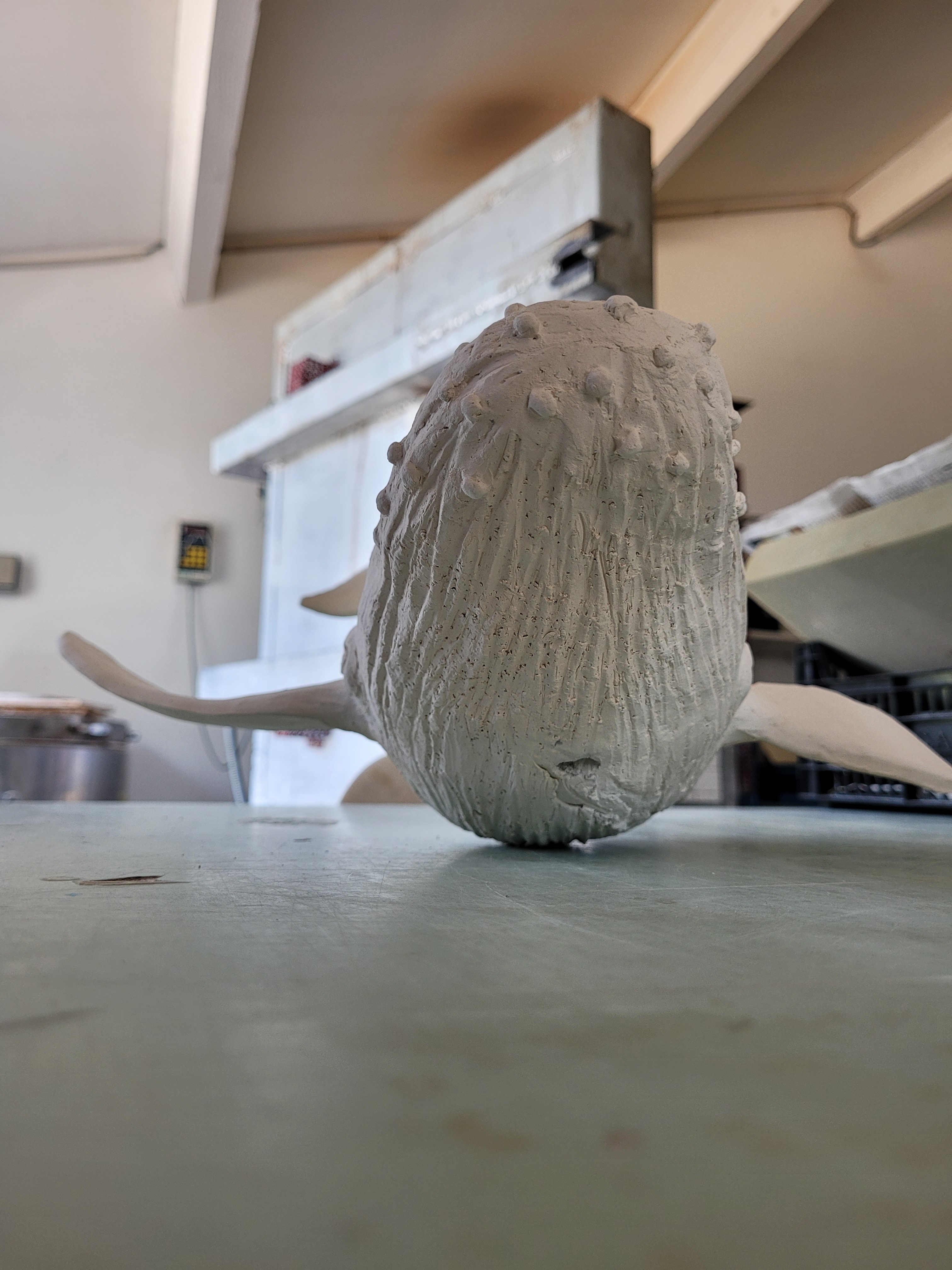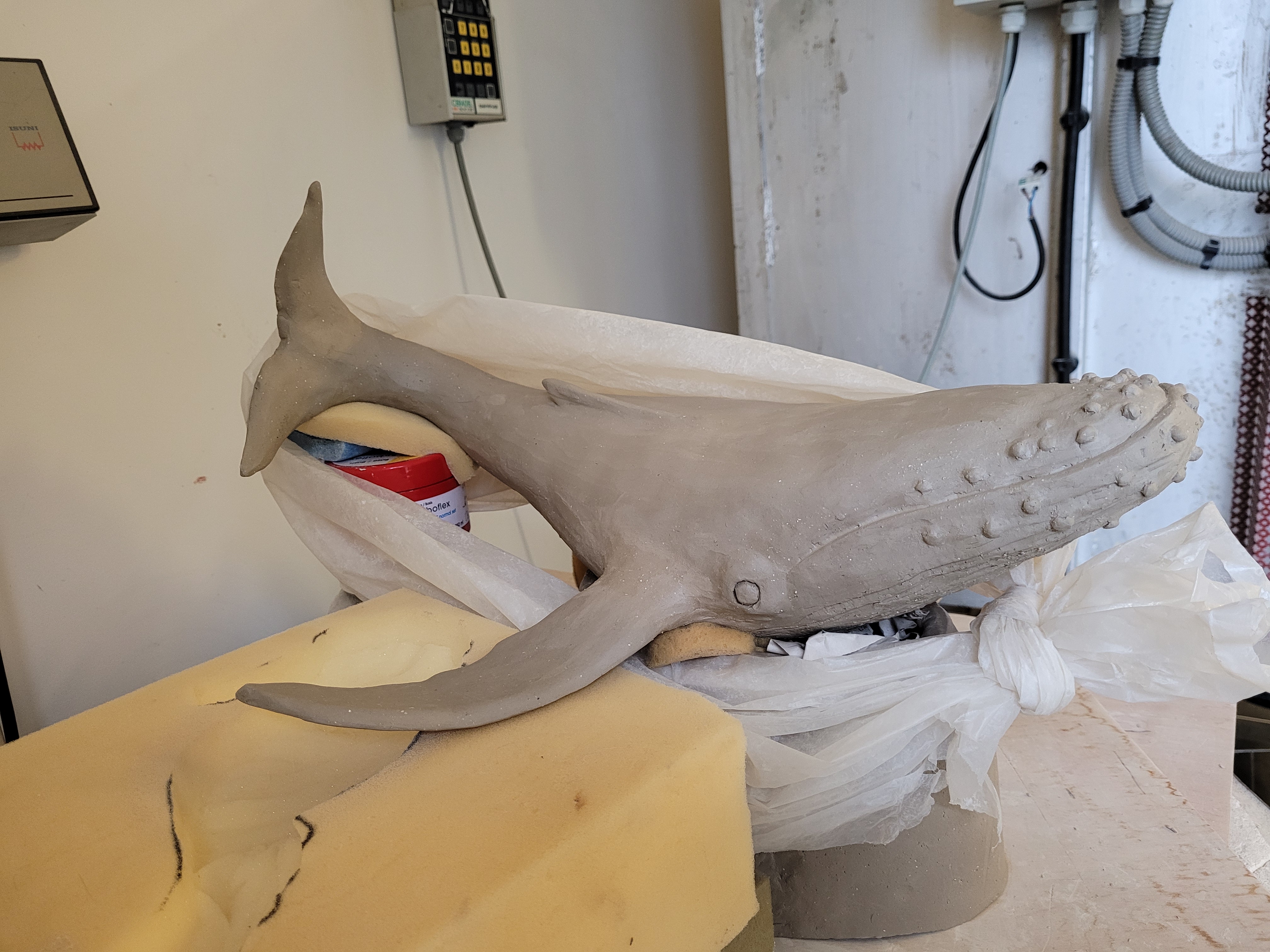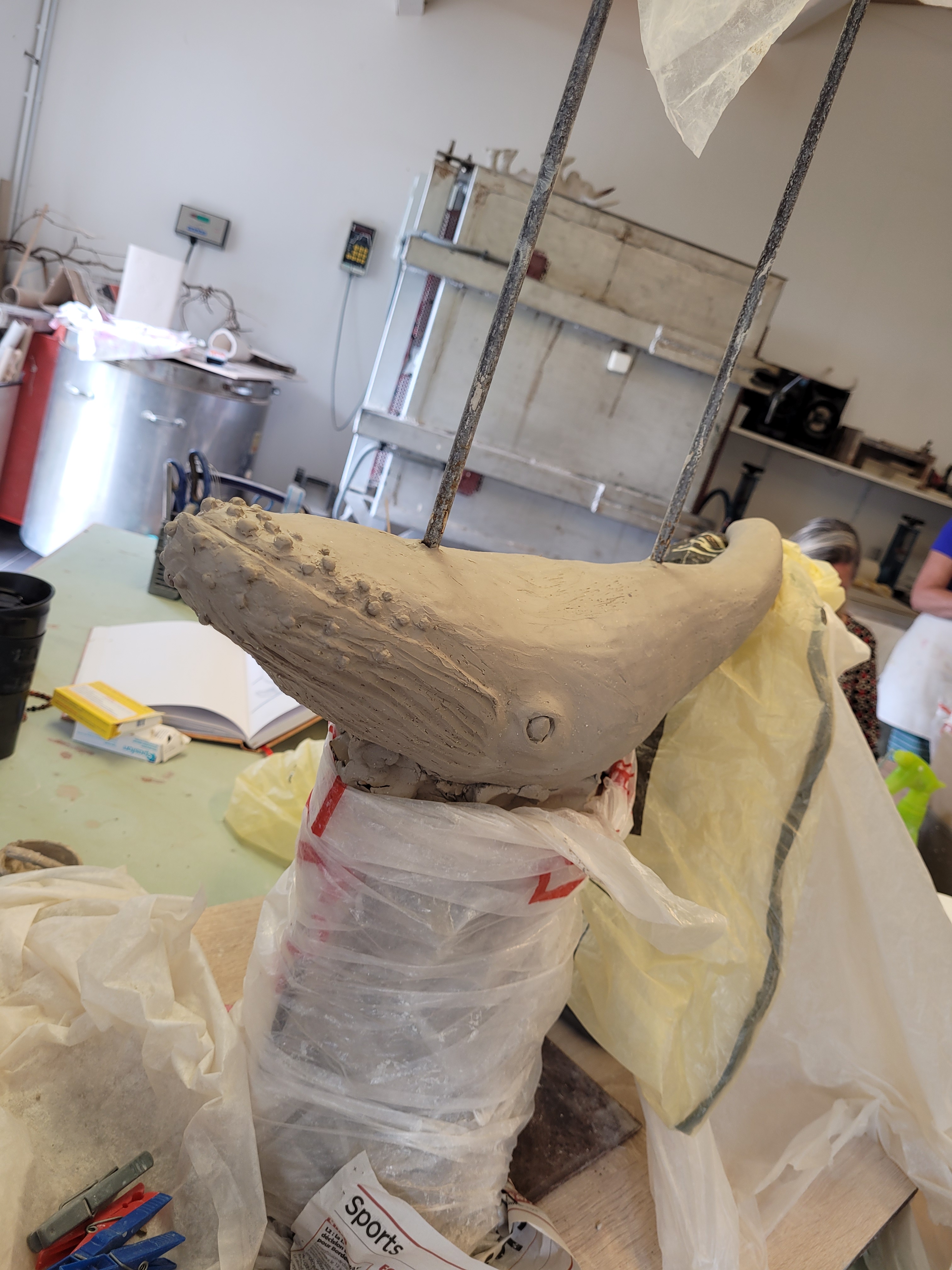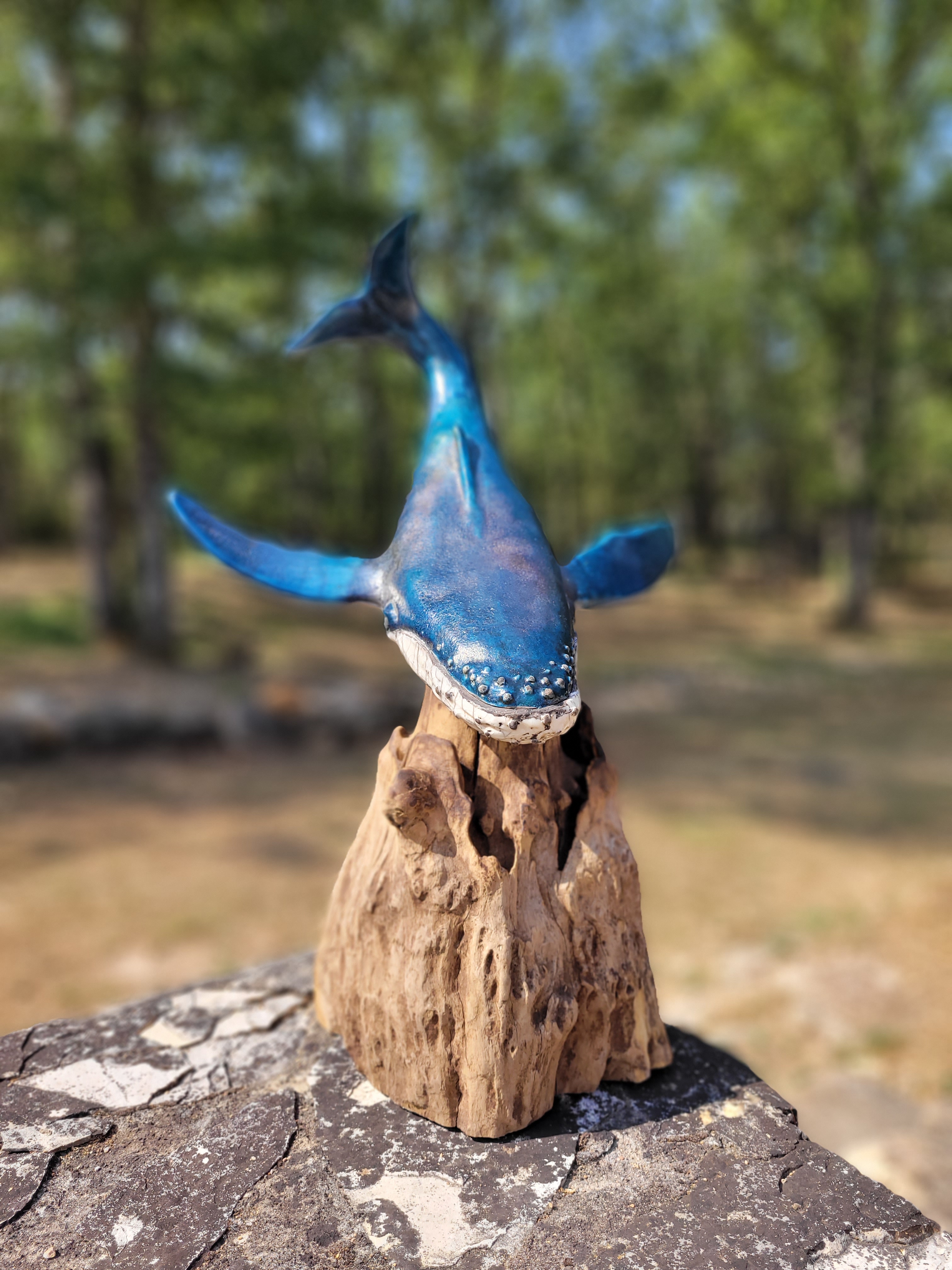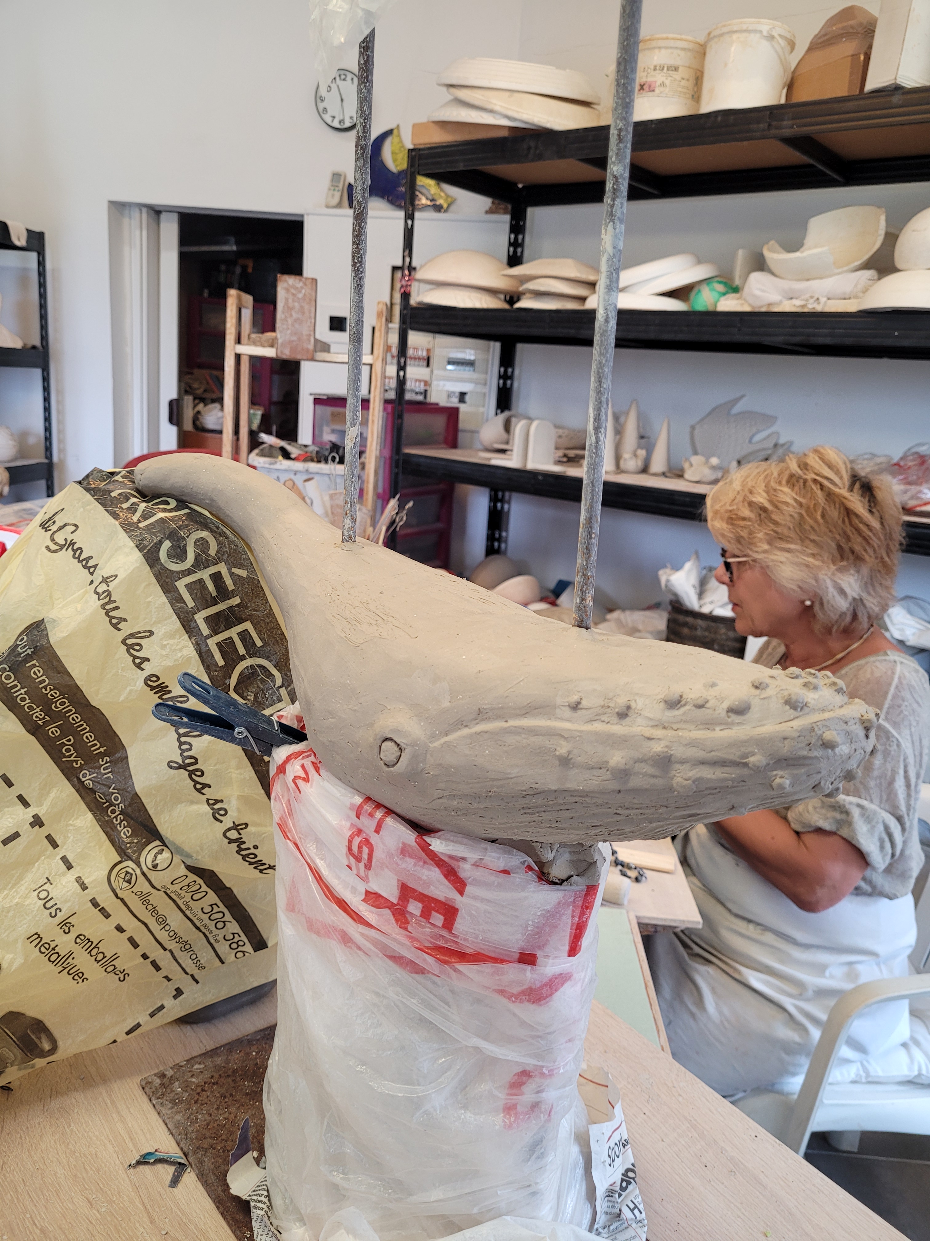 A ce jour, Hoplie est mon plus grand challenge. Réalisée pour l’amour de ma vie, qui adore les baleines à bosses, les défis étaient de : monter ce monstre, de 50cm d’envergure, sans le casser avant cuisson, de donner un mouvement « aérien » à un mastodonte aquatique, de trouver un émaillage qui lui fasse honneur, et de trouver un moyen d’exposer la chose de manière stable, et si possible, esthétique.